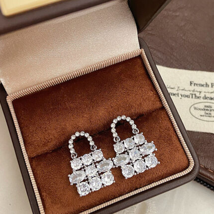 Diamond-encrusted handbag-shaped earrings